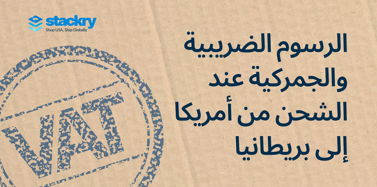 في معظم الحالات، تُحتسب ضريبة القيمة المضافة بنسبة 20% من التكلفة الإجمالية للسلعة. وينطبق ذلك سواء اشتريت من متجر أمريكي، أو سوق إلكتروني، أو خدمة إعادة شحن. يمكنك معرفة المزيد حول لوائح استيراد السلع إلى المملكة المتحدة، أو إرسال السلع إلى المملكة المتحدة من الخارج عبر موقع HMRC.
